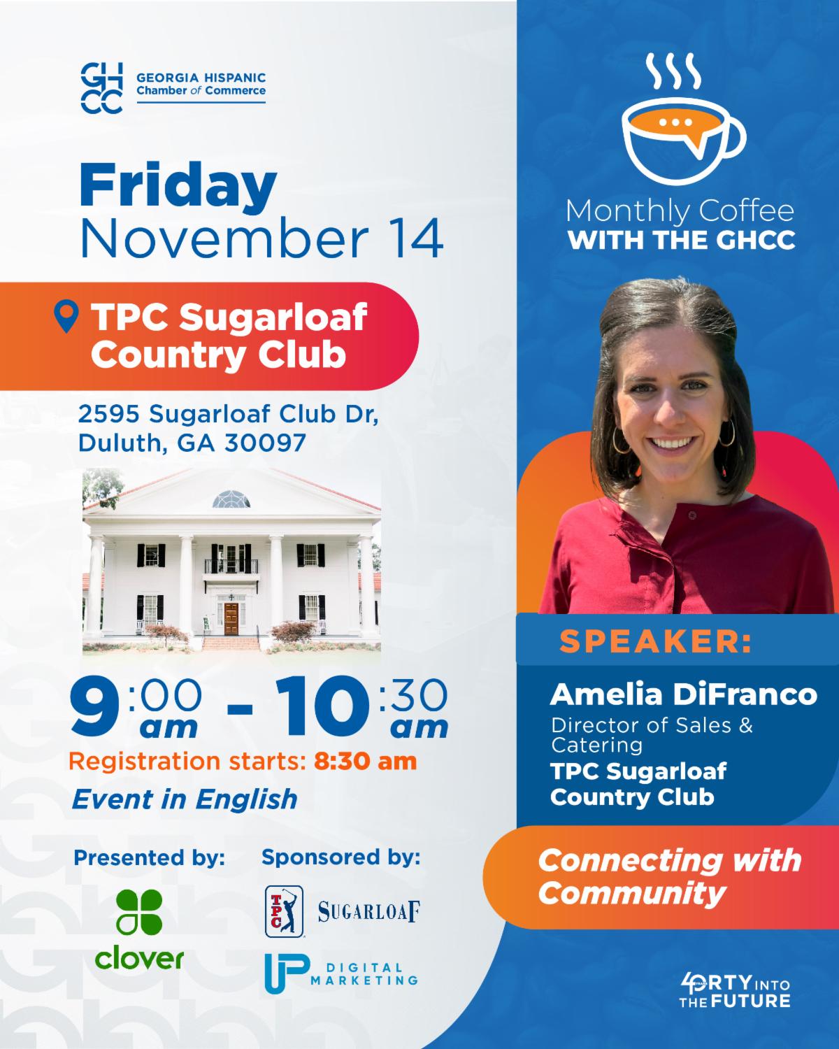 | 11/9/2025 | Join us for a community business expo on November 9, 2025, from 11:00 AM to 4:00 PM at the Merle Manders Conference Center in Stockbridge, GA. The mission of this event is to connect and promote Hispanic-owned businesses located in the South Atlanta area. Families, friends, and clients are invited to attend and support local entrepreneurs. more info... |